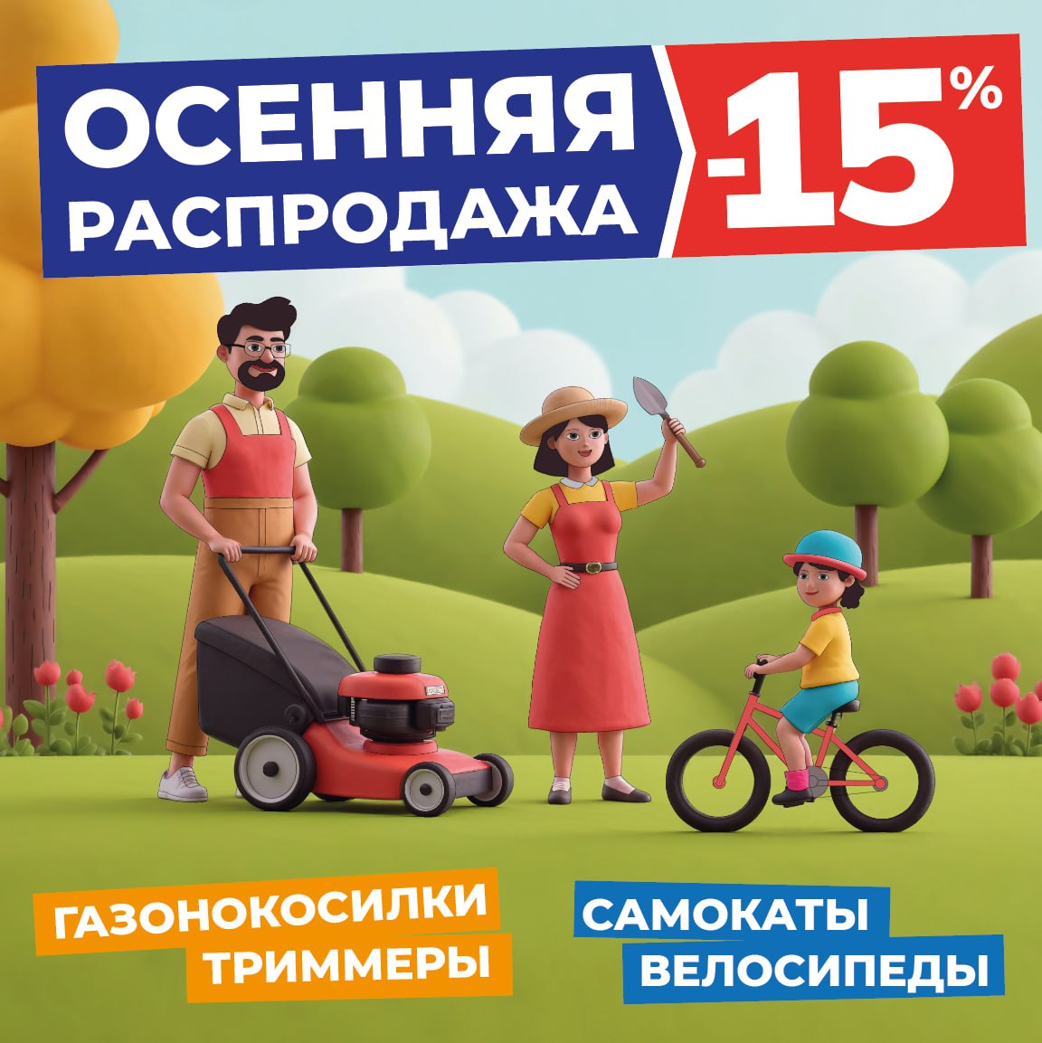 С 1 по 30 сентября в нашем комиссионном магазине проходит сезонная акция. Только в этот период вы можете приобрести популярную технику и транспорт для дома и отдыха со скидкой 15%.